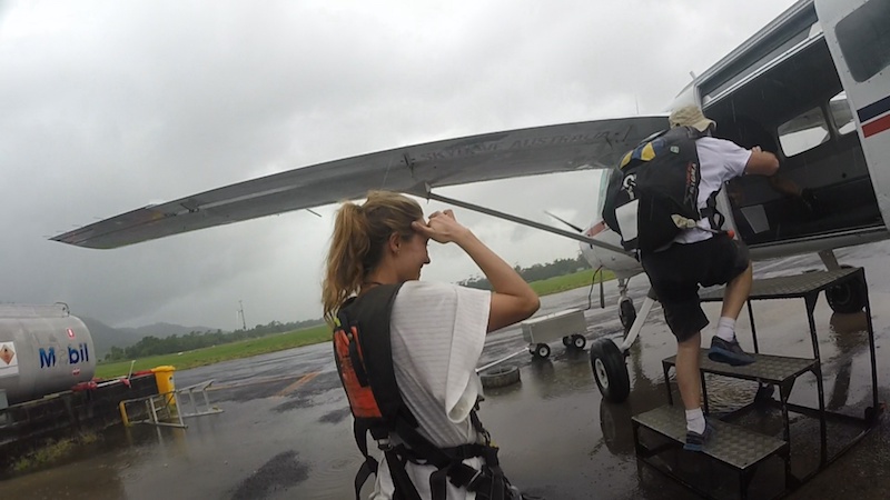 The night before the jump was not very good, but I still woke up early, tried to pass time and keep myself occupied. We had to take a bus out of Mission beach to a tiny airport. The drive was not long, but it felt like forever. I got a bit nervous when I noticed the rain starting to fall down and clouds coming up in the sky. Secretly, I hoped to avoid the jump last minute. But nope, “all good, we can jump”.