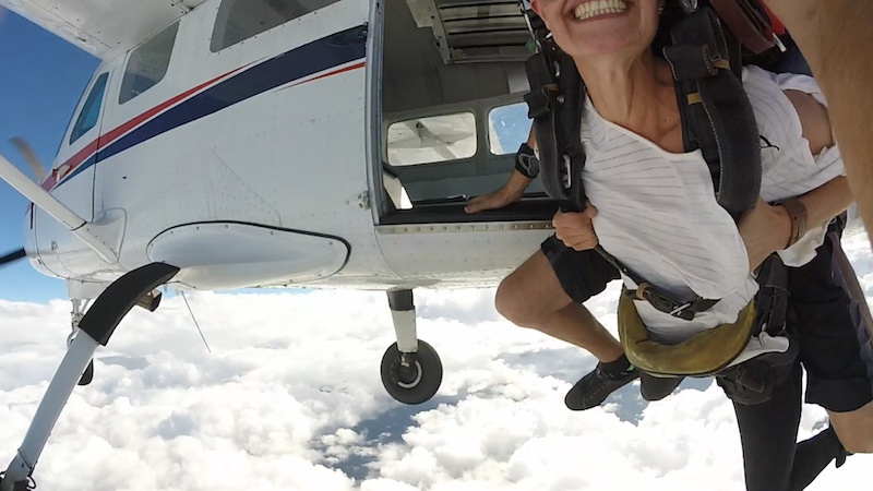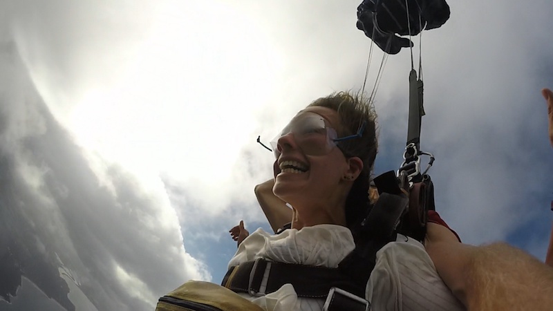 Skydiving, jumping out of an airplane. I was super scared to do so. Actually I was scared of height in general. Jumping down three metres into the water used to be a huge challenge for me. Skydiving facing my fear and overcoming it.