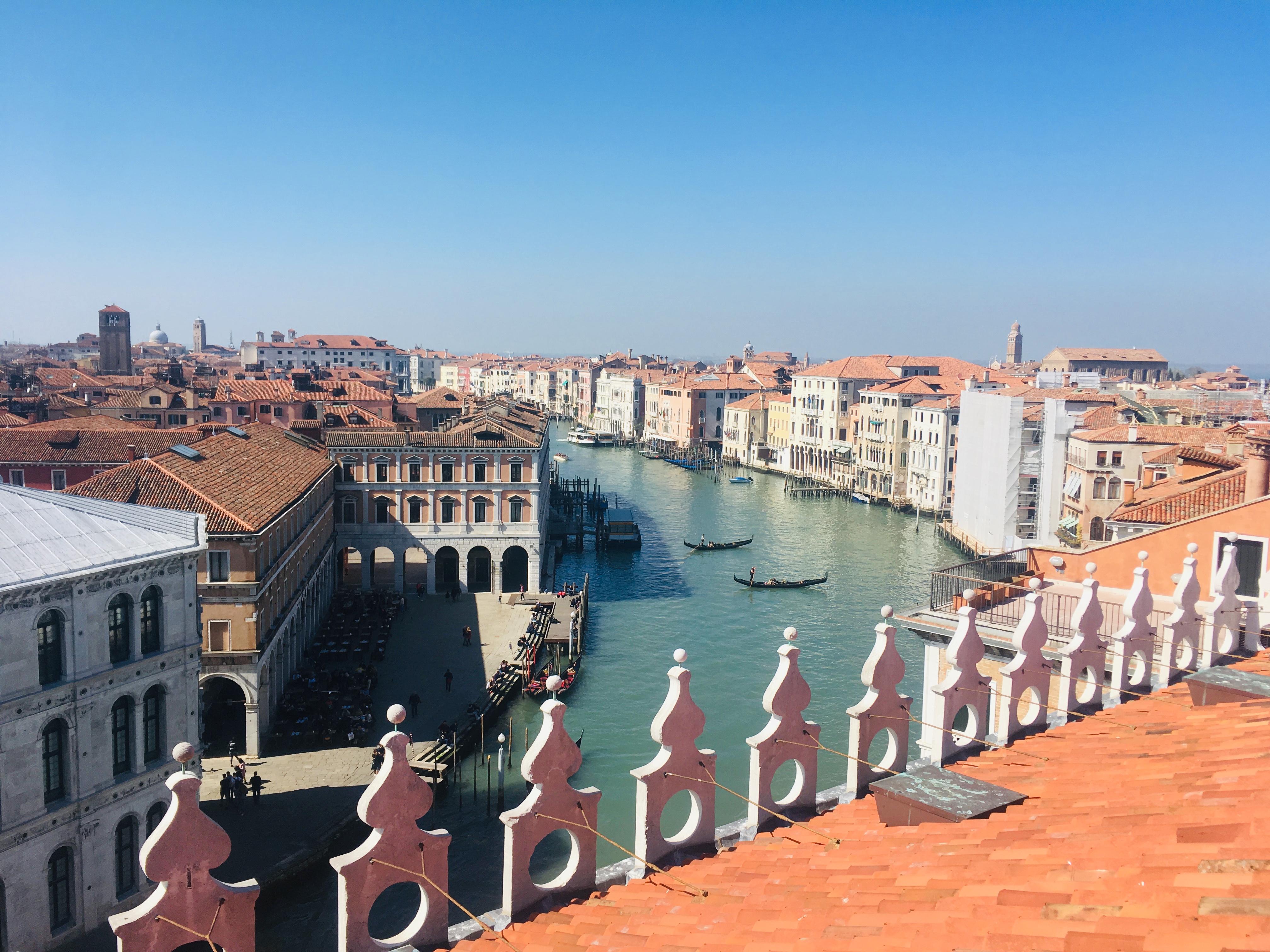 You can get on the rooftop of the huge shopping mall fondaco dei tedeschi for free. Once you made a free booking online you can use the viewing plattform to take pictures for 15 minutes.
