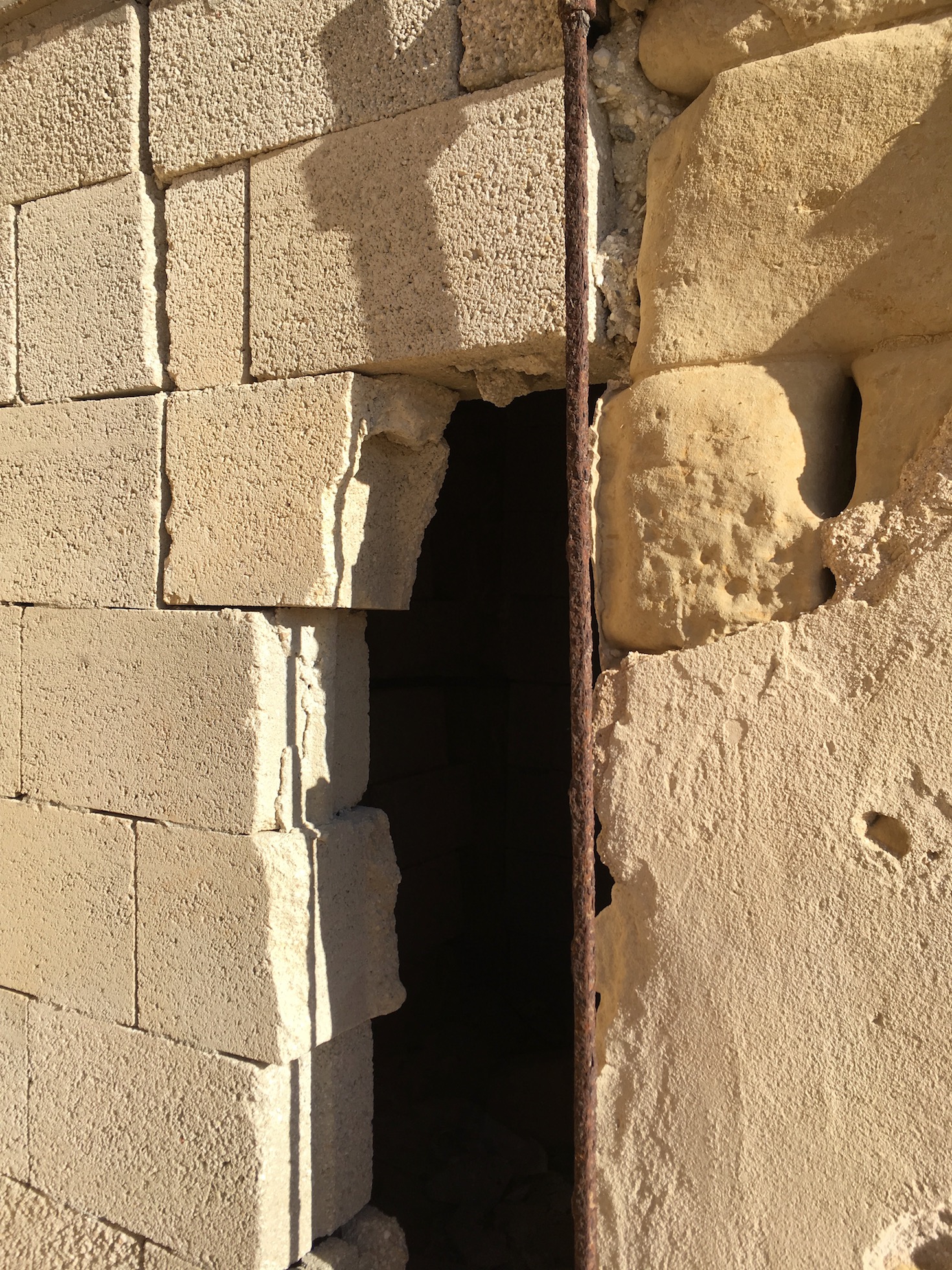 Since Tibout and I are adventurers we were magically attracted by the old building with the impressive lock and its stunning view over the ocean and the salt fields. The thick lock blocked the entrance. Of course, the lock did not stop ourselves from our desire of discovering the inside. Looking for an entrance, Tibout found another door – bricked but with missing stones and big enough to climb through. And as we discovered later, there are several of ruins like this one on Gozo, but also on Malta. On the discovery tour, we concluded that it had to be used as an bar at some point, no matter what the sign says. Windows, a terrace as well as tables and bars were our pieces of evidence. You can find another abandoned buiding in Gozo in the eastern village Qala.